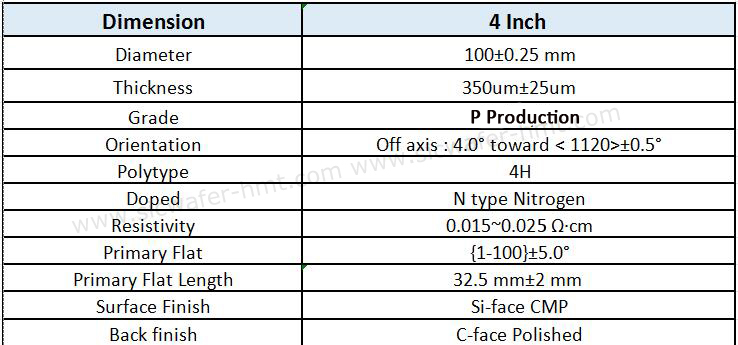 Where can purchase 4 inch SiC Substrate(P grade)? You can contact HMT-professional 4 inch SiC Substrate Manufacturer in China. We offer P grade (350um) Conductive N type and SI type of 4” SiC Substrate with preferential prices. Although the mainstream of SiC is now 6 inch, 8 inch, and even 12 inch have been successfully developed. we still keep 4 inch SiC Substrate and 4 inch SiC Boules(P grade) for some customers.