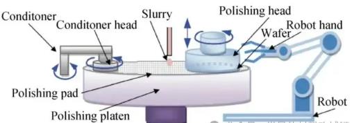 Chemical Mechanical Polishing (CMP) is a surface finishing technique that combines chemical etching with mechanical grinding (Figure 1). For silicon carbide (SiC), the chemical process involves reactions between chemicals in the polishing slurry and the SiC surface to form a softer modified layer (such as silicon dioxide or metal oxides), making it more susceptible to mechanical removal. The mechanical action employs nanoscale abrasives (e.g., silica or alumina) to physically abrade the surface and remove material. Through this alternating cycle of chemical softening and mechanical removal, an atomically smooth surface (with roughness <0.5 nm) can be achieved.